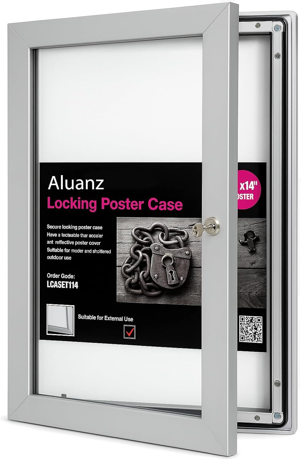Afsluitbare postervitrine outdoor/indoor: De beste oplossing voor outdoor presentatie van posters: – 100% Waterbestendig door middel van rubber in deurprofiel – Raamconstructie uit één geheel 48 mm profiel – Deur voorzien van heldere PET ACRYL – Afsluitbaar met 1 of 2 sloten (afhankelijk van het formaat), inclusief 2 sleutels – Kan zowel portret als landschap opgehangen worden