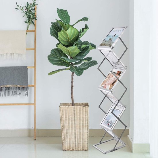 Een professionele presentatie begint met overzicht. Deze aluminium brochurehouder met modern zigzag design biedt ruimte aan 6 A4-brochures (ook geschikt voor A5) en is binnen enkele seconden gebruiksklaar.