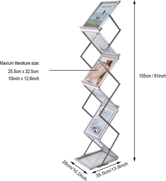 Professionele en hoog-kwalitatieve opvouwbare zigzag standaard voor de presentatie van documenten of brochures op A4 formaat of kleiner.